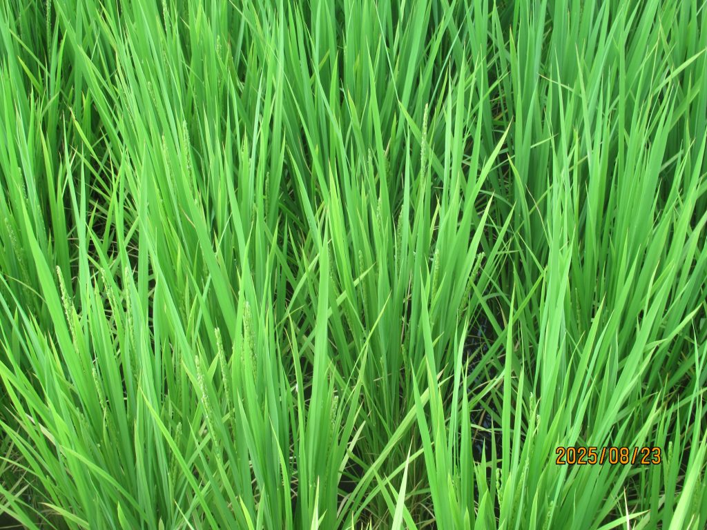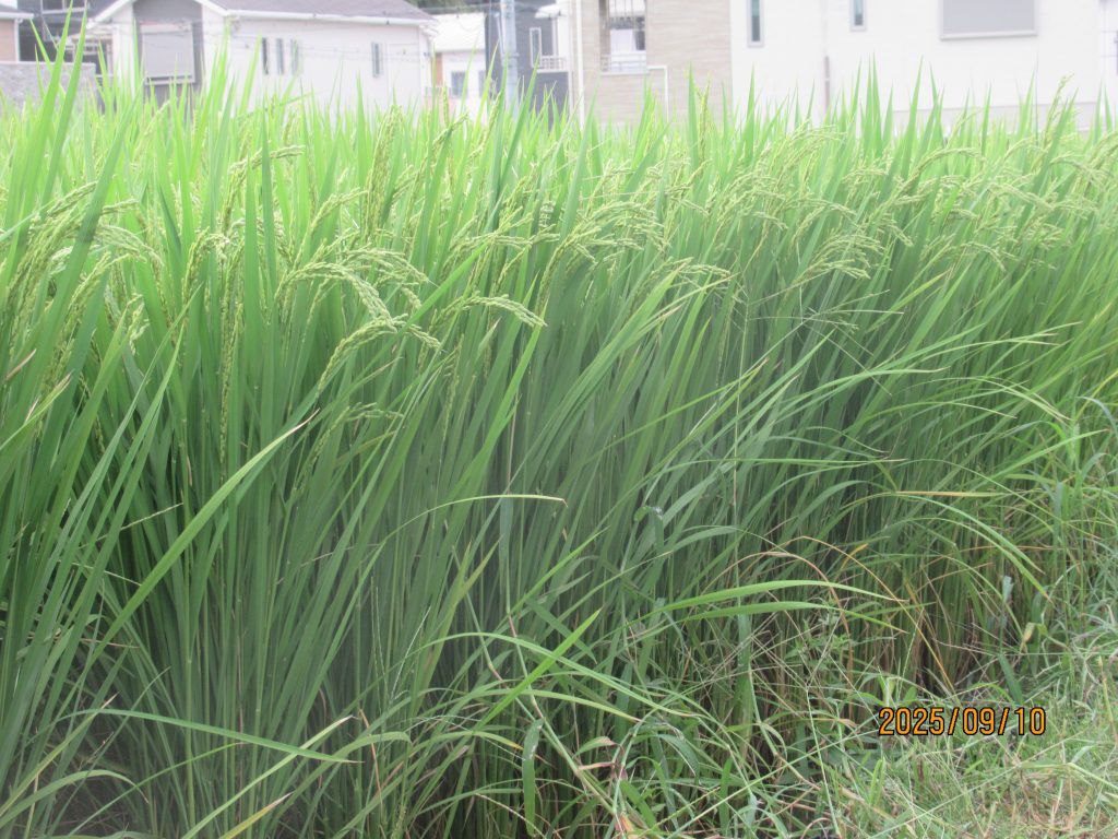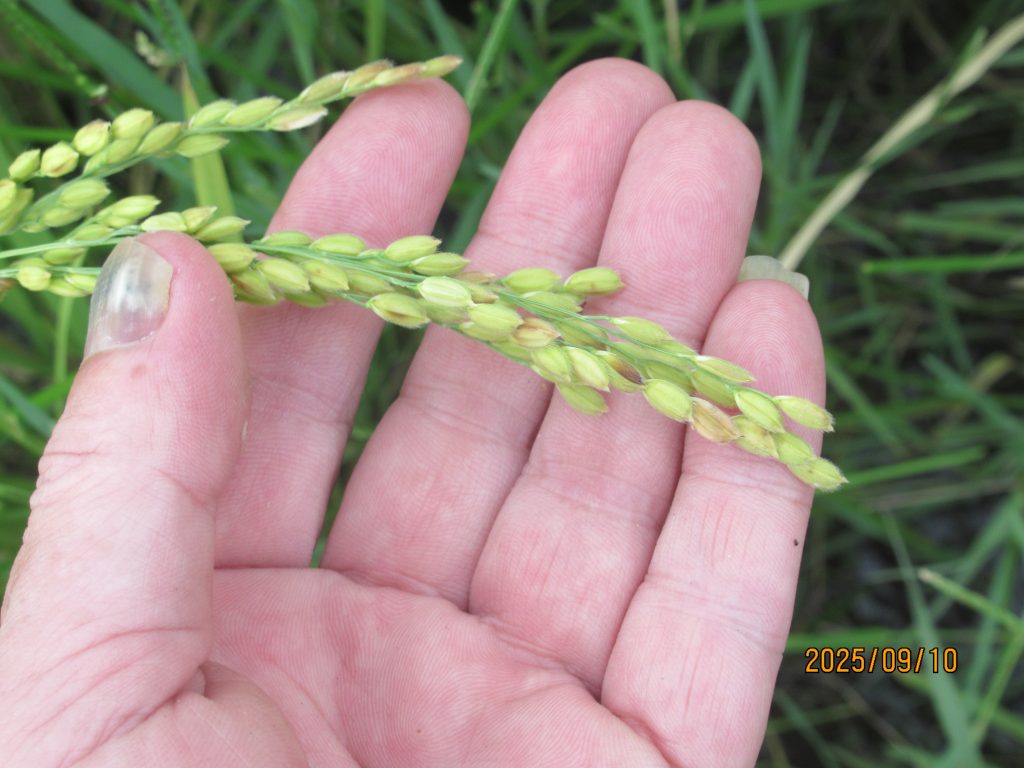 いつも通り出穂を確認。40日後くらいに稲刈りだ。