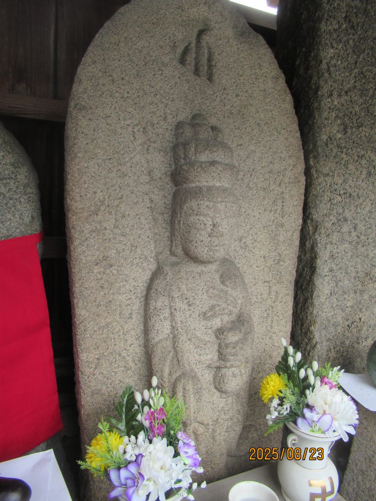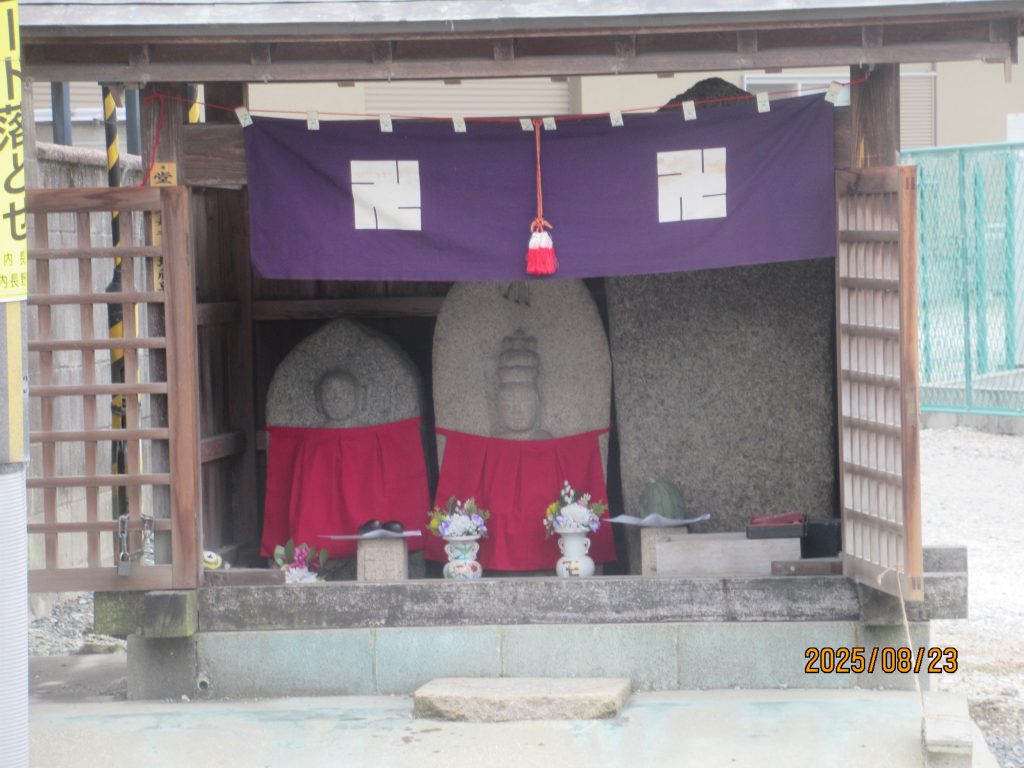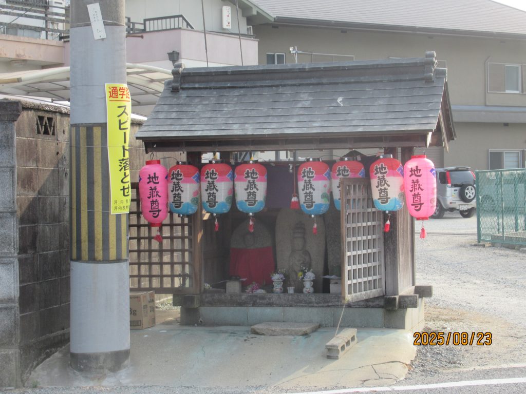 地蔵の前掛けを新調していただいたのできれいになっています。間違って観音様まで着けてしまったのでした。今年も子供のお参りは無かった。