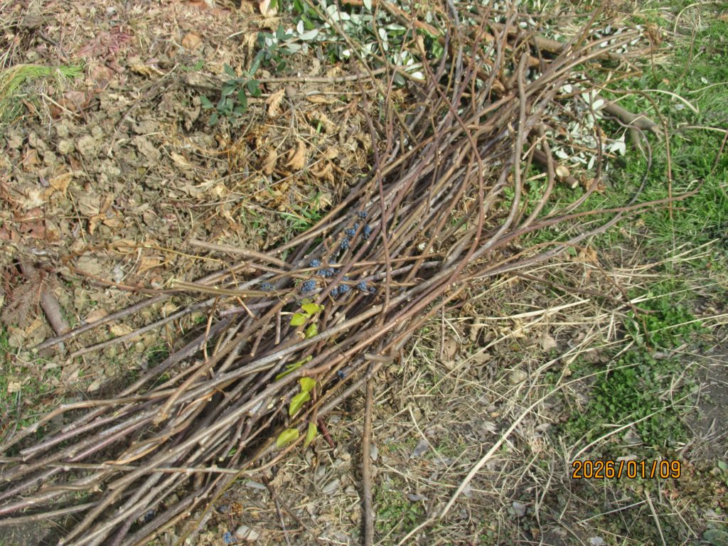 いつもは2月下旬に行うキウイの剪定ですが、男木の良く伸びている枝のみ剪定した。