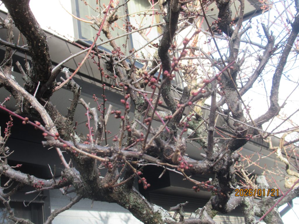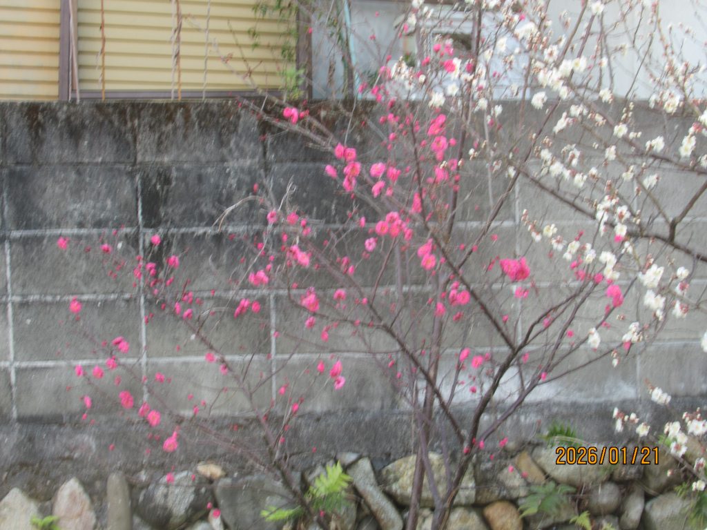日陰にある梅は紅白とも満開状態だが日向にある梅はまだまだ!